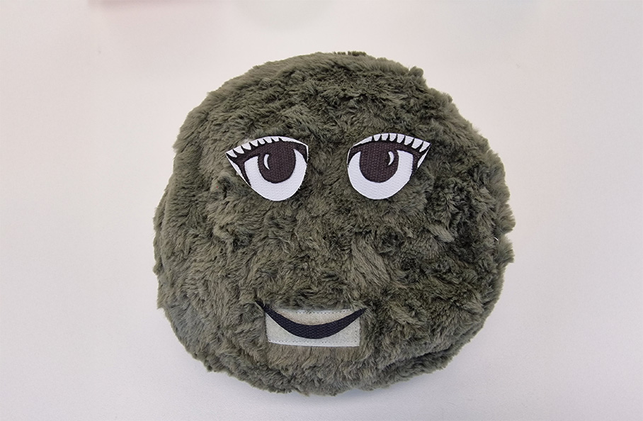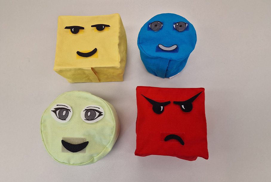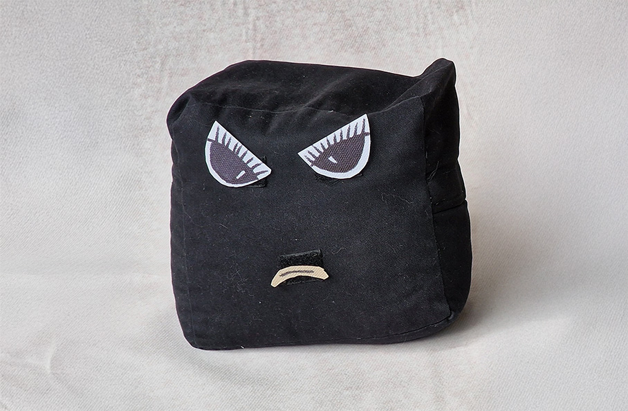 Die Position der Augen und des Mundes und damit der mimische Ausdruck können durch Klettverschluss verändert werden. Sets aus Augen und Mund liegen bei, weitere können aus dem beiliegenden Stück Klettband selbst nach eigenen Vorstellungen gestaltet werden.
